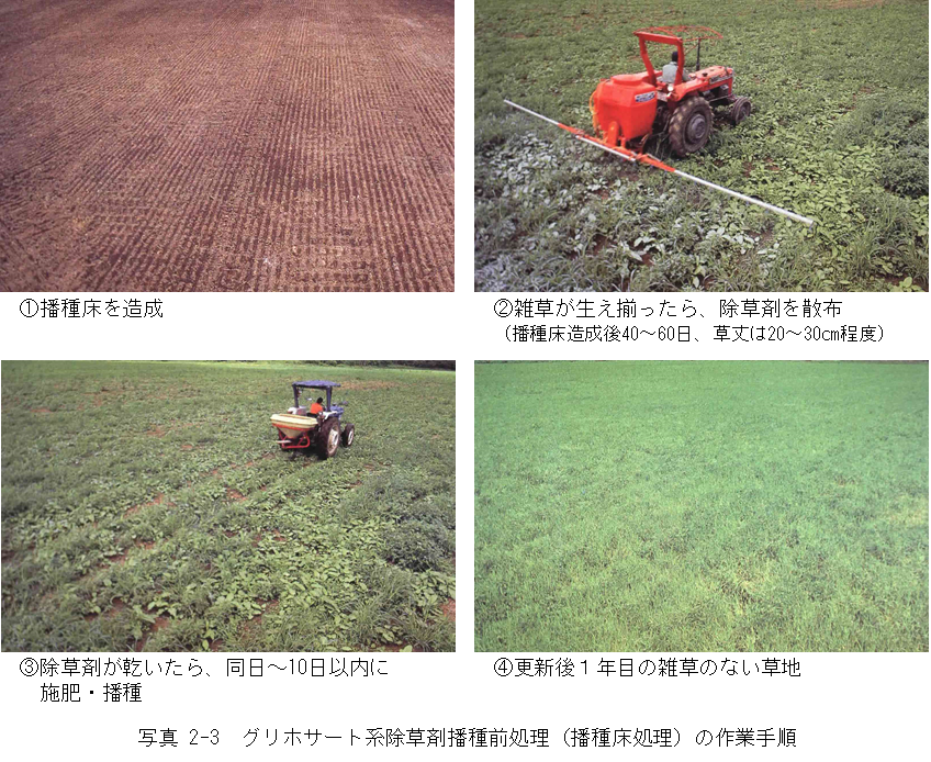 更新時の除草剤の利用については、以下の1~2の方法が挙げられます。