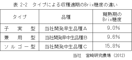 収穫適期のソルガムの水分含量は75~80%と、黄熟期の飼料用トウモロコシに比べ高く、発酵品質に問題が出る場合があります。糖度が高いソルゴー型ソルガム品種のブリックス糖度は、乳熟期~糊熟期では15度前後まで高まり(表
